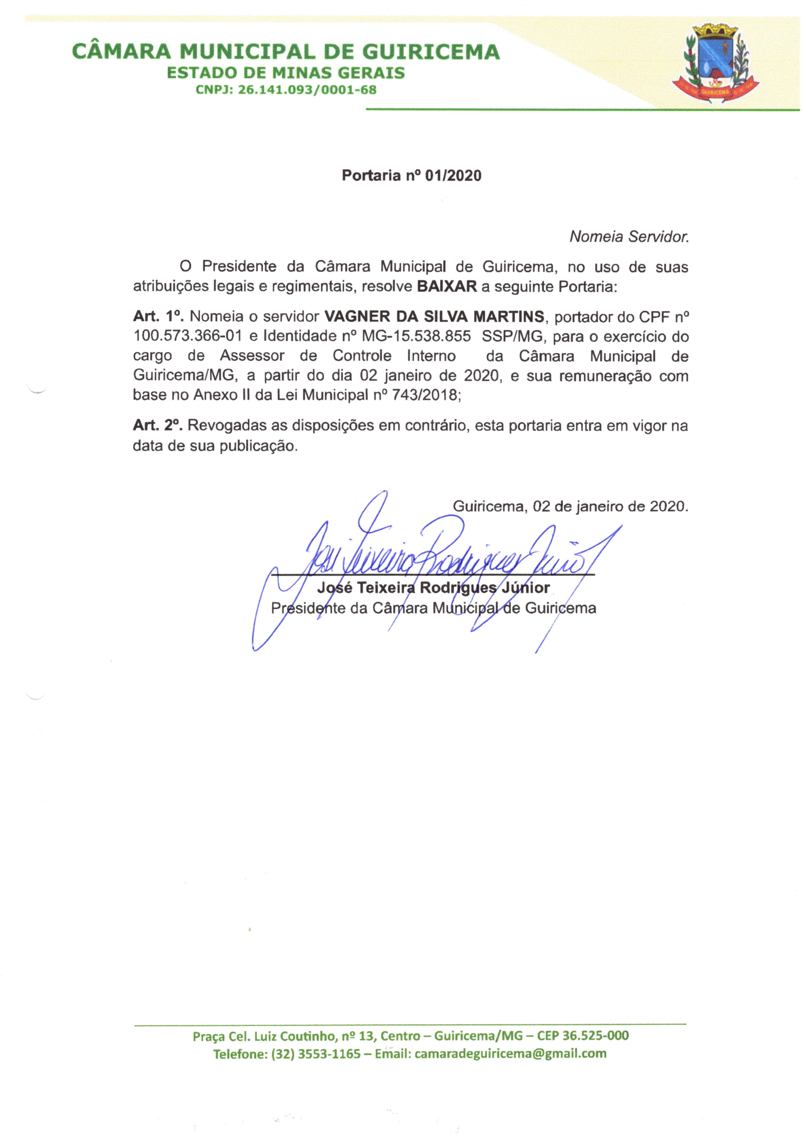 Portaria nº 001/2020