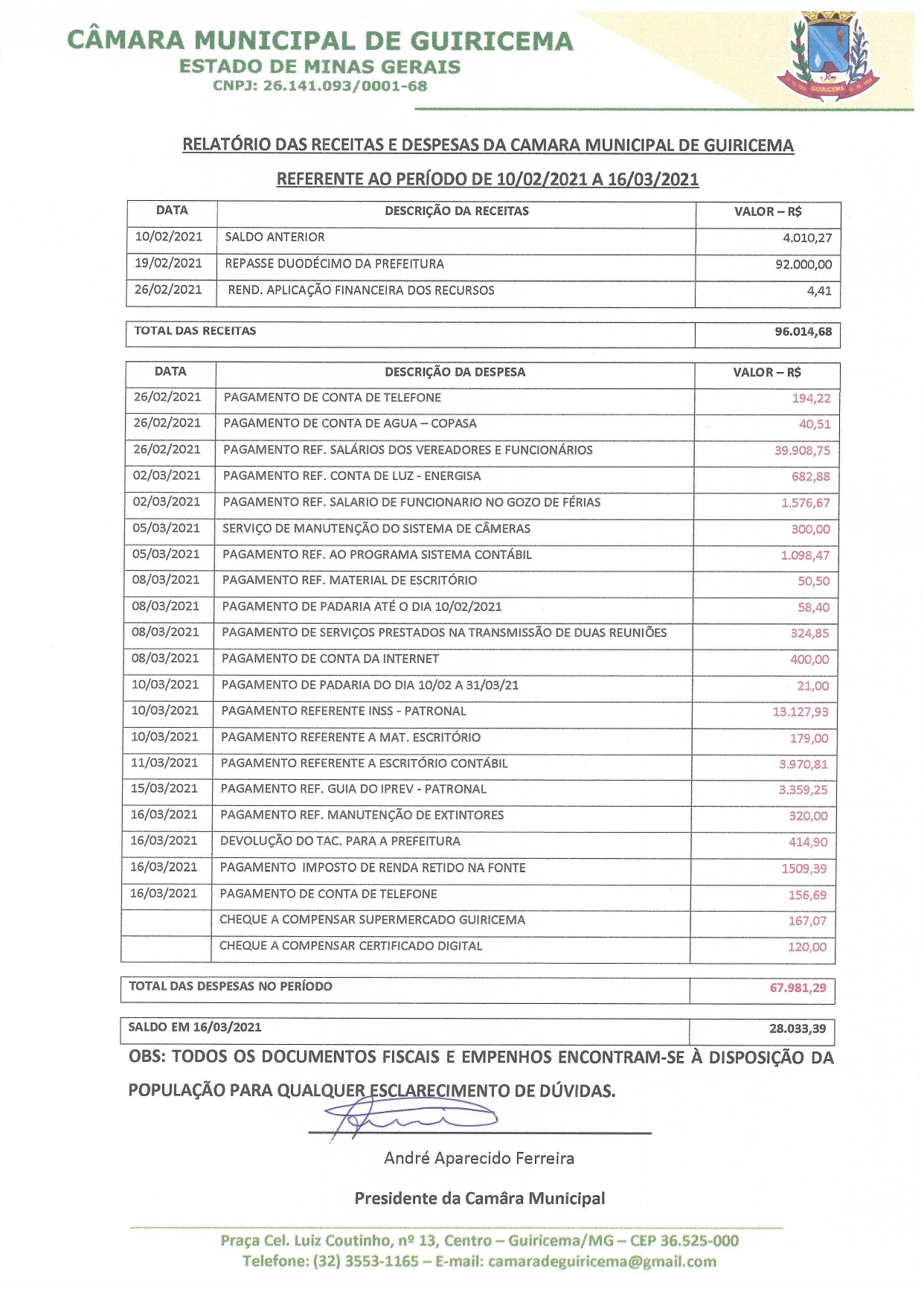 Prestação de Contas - Fevereiro
